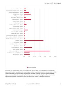 This chart illustrates the current percent of total cost breakdown of the Components in the community. Special attention should be given to those components which take up a bulk of the % of the current cost as these may require significant planning to adequately budget for their replacement.