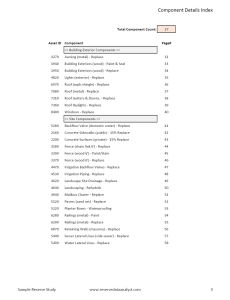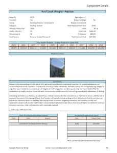 Detailed commentary for each component including current costs, useful life, remaining useful life, next replacement year, location, measurement information, maintenance, repair and replacement suggestions. Photographic inventory will typically be included.
