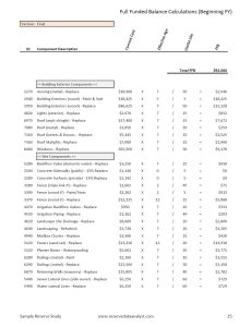 This page shows the Fully Funded Balance (FFB) calculation for each component which when added up equals the Fully Funded Balance (Ideal Balance) provided in the reserve study. Note that this is not the total cost of replacement or the cost to rebuild the building but is a number that is an ideal reserve account balance at one point in time.