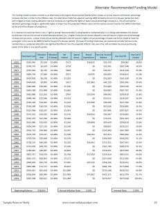 Funding Model Projections for each reserve funding model in the study. Typically at a minimum Recommended, Baseline and Current Funding Model Projections will be included. The list includes annual contributions, interest earned, annual expenditures, projected year-end balance the fully funded balance and percent funded for each year of the study.