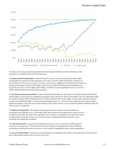 The findings of the reserve study are summarized for the reader. This includes a percent funded calculation and an ideal reserve account balance (Fully Funded Balance) and a risk assessment indicator. A 5-year summary of the funding models can be also be found here.